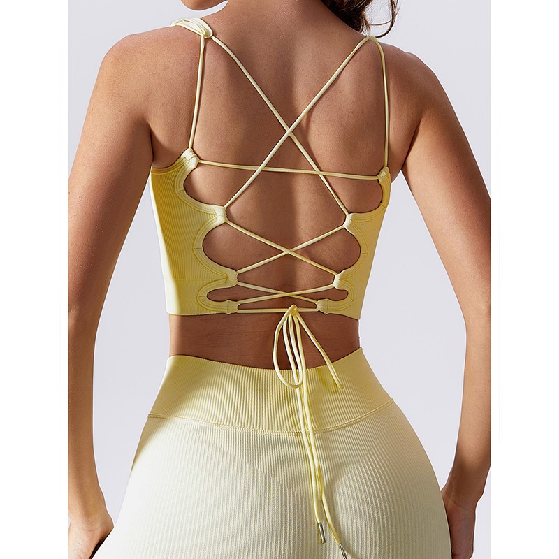 Brugerdefineret logo Kvinder i høj kvalitet polstret stroppet yoga sportsbh. Sexet aktiv slid fitness træning sports bh til kvinder. Du er velkommen til at komme til vores fabrik for at købe den seneste salg, lave pris og fugt af høj kvalitet Wicking Sports.