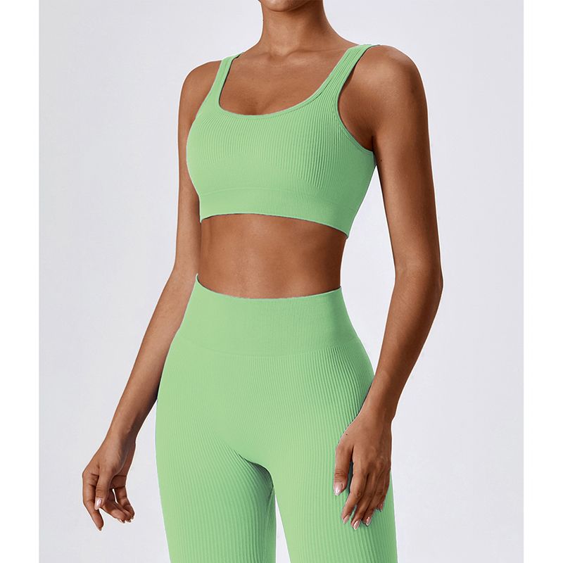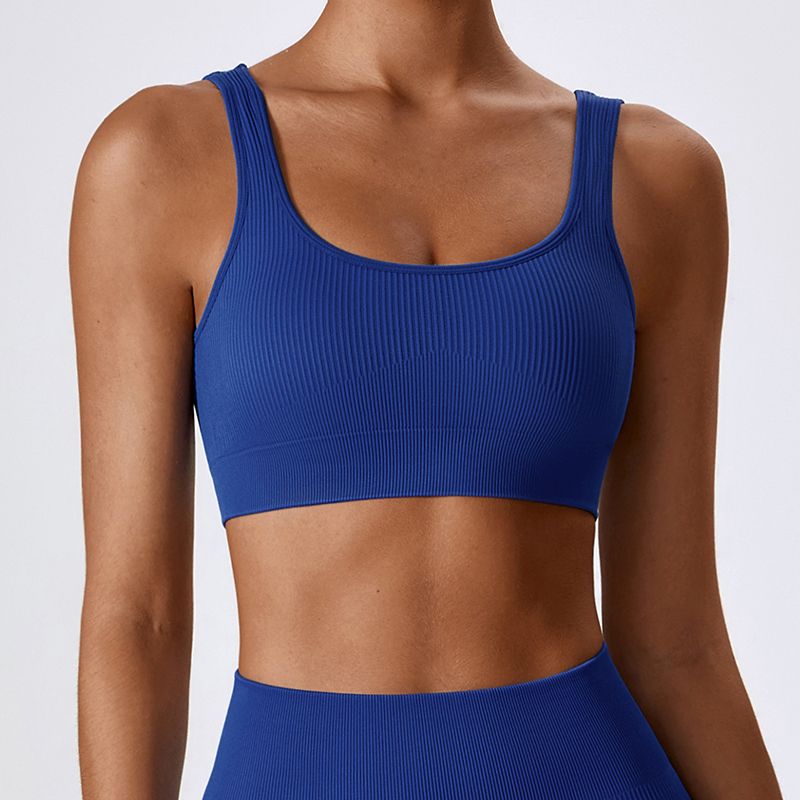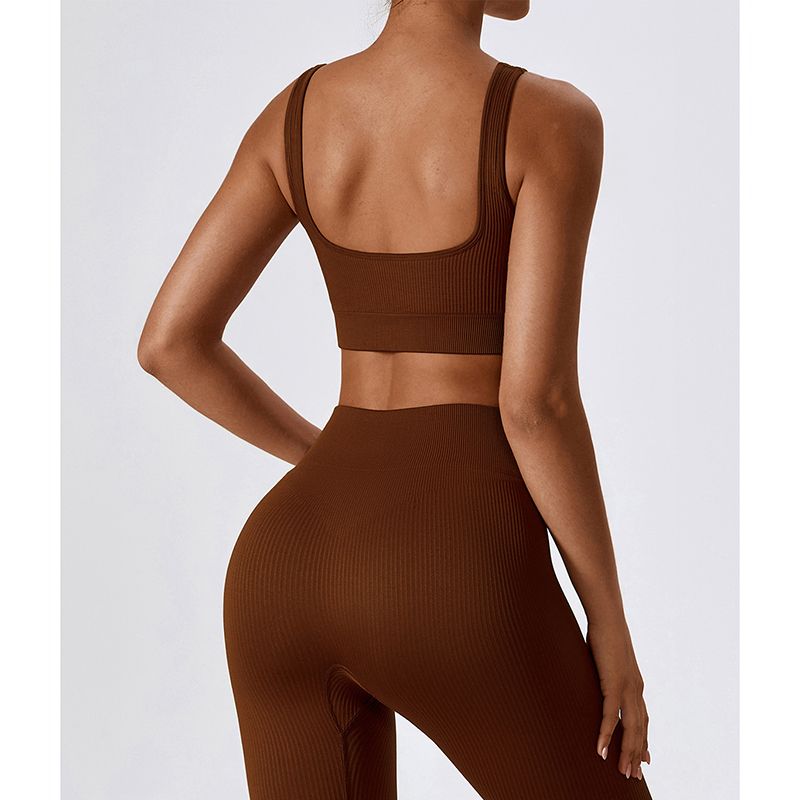 OEM Fast farve Kvinder fitness aftagelige kopper tomme gymnastik yoga afgrøde top. Ribbet firkantet nakkehals -sportsbh for kvinder.
