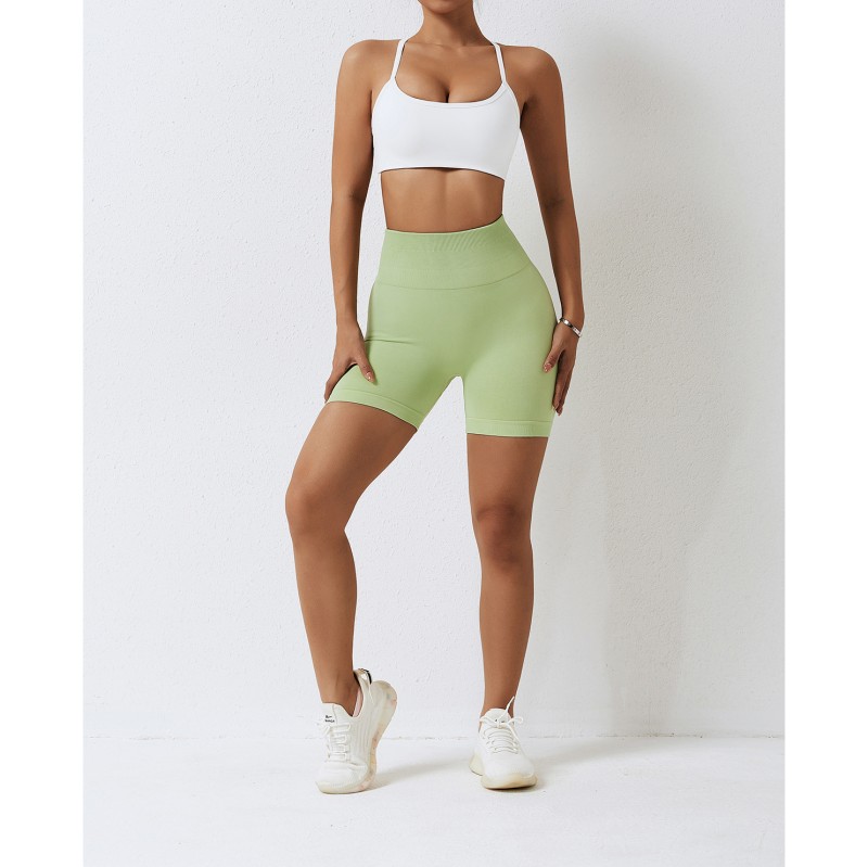 Konceptet med stretchy gym-øvelser, sømløse shortsdesign